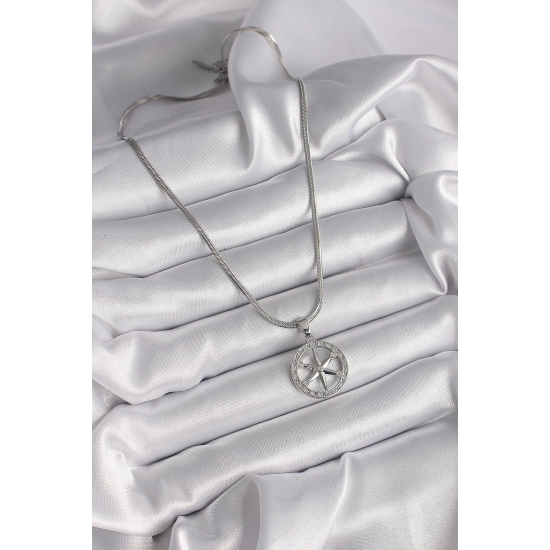 Mey İthalat® 316L Çelik Gümüş Renk İtalyan Zincir Zirkon Taşlı Kutup Yıldız Model Kadın Kolye
