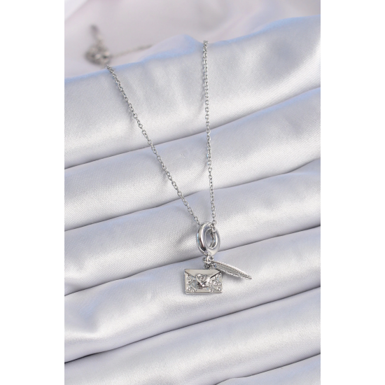 Mey İthalat® 316L Çelik Gümüş Renk Kalp Detay Mektup Figür Charm Model Kadın Kolye