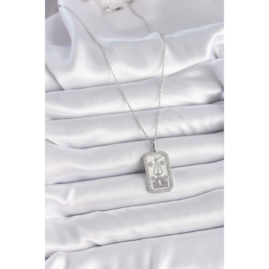 Mey İthalat® 316L Çelik Gümüş Renk Terazi Burcu Zirkon Taşlı Kadın Kolye