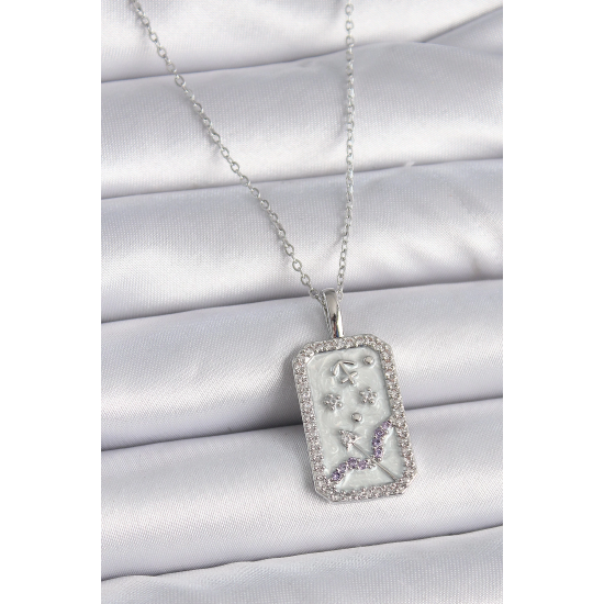 Mey İthalat® 316L Çelik Gümüş Renk Zincir Yay Burcu Zirkon Taşlı Kadın Kolye