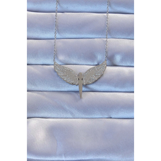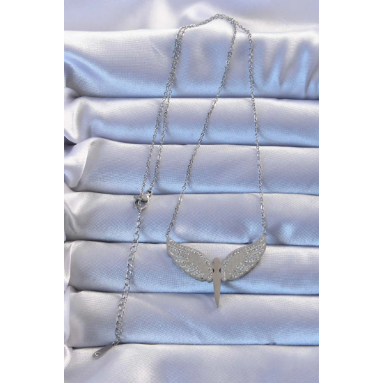 Mey İthalat® 316L Çelik Gümüş Renk Zirkon Taşlı Mikail Kolye