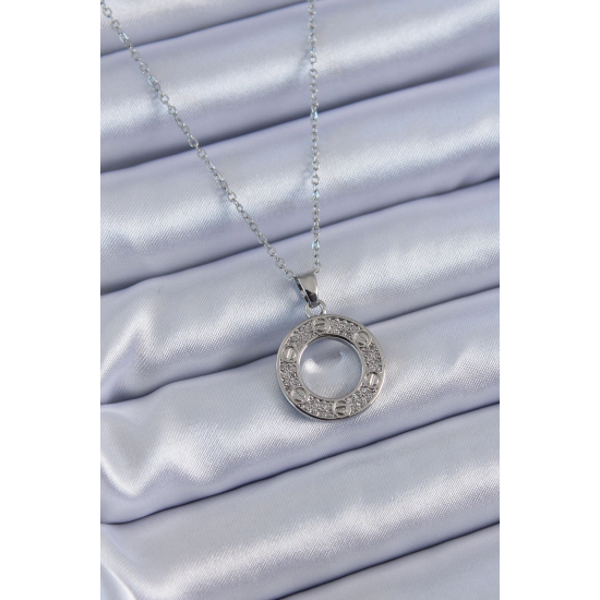 Mey İthalat® 316L Çelik Gümüş Renk Zirkon Taşlı Model Kadın Kolye