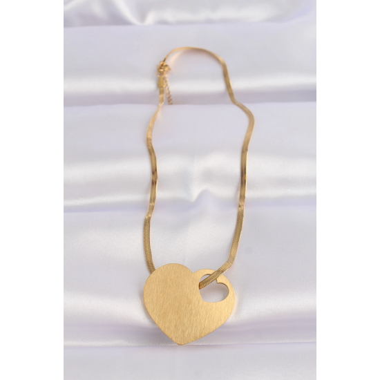 Mey İthalat® 316L Çelik İtalyan Zincir Altın Renk Düz Plaka Kalp Kolye