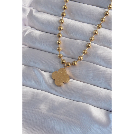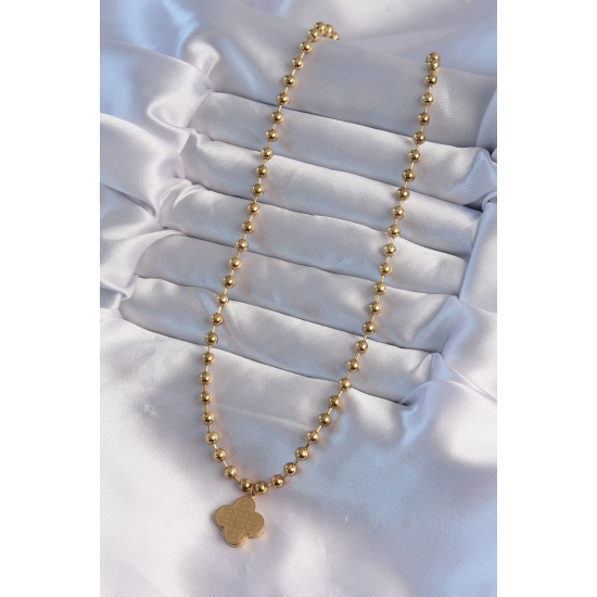 Mey İthalat® 316L Çelik Top Zincirli Gold Renk İşlemeli Yonca Model Kolye