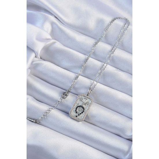 Mey İthalat® 316L Çelik Zincir Gümüş Renk Zirkon Taşlı Minimal Papatya Figürlü Tarot Kolye