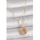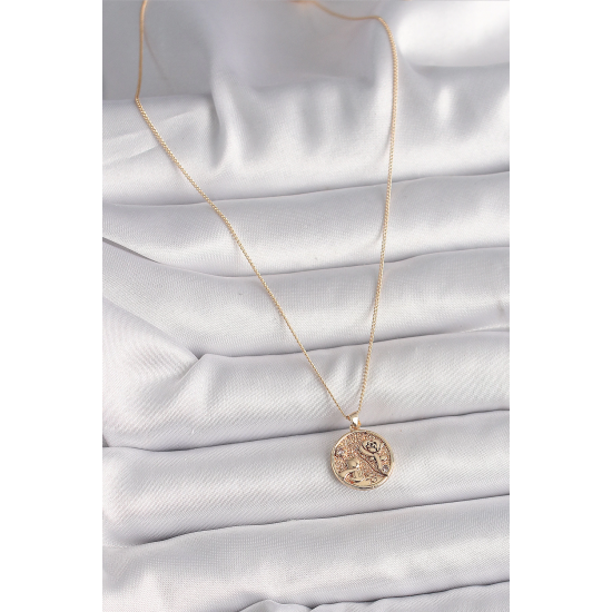 Mey İthalat® Pirinç Gold Renk Zirkon Taş Detaylı Gül İşleme Madalyon Model Kadın Kolye