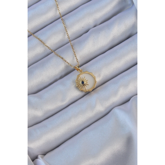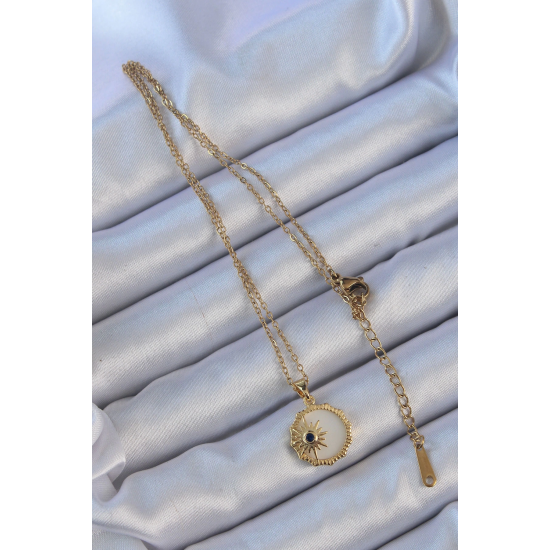 Mey İthalat® 316L Çelik Altın Renk Zirkon Taşlı Mineli Kutup Yıldızı Kolye