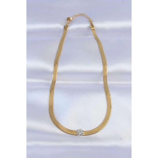 Mey İthalat® 316L Çelik Gold Renk Tek Zirkon Taşlı İtalyan Zincir Kolye