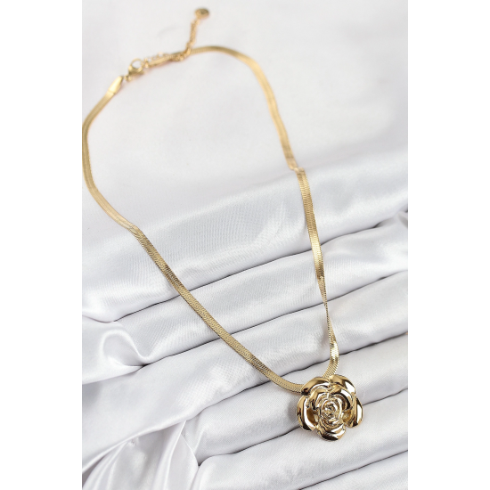 Mey İthalat® 316L Çelik Gül Figürlü İtalyan Zincir Model Gold Renk Kadın Kolye