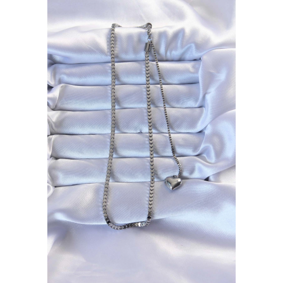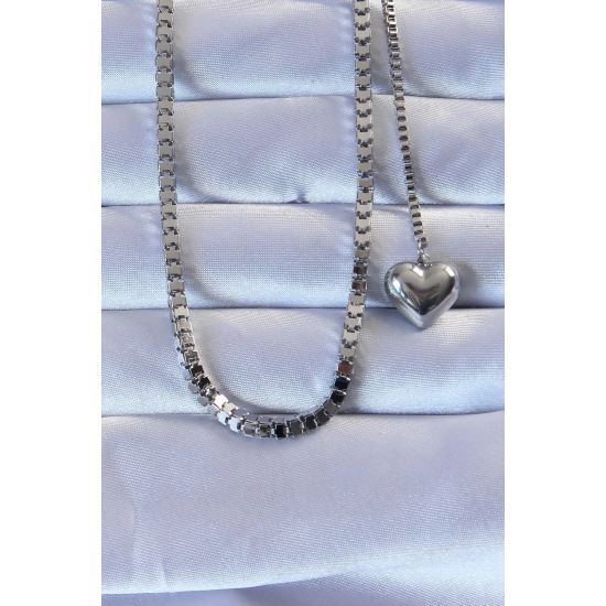 Mey İthalat® 316L Çelik Gümüş Renk Küp Zincirli Kalpli Kolye