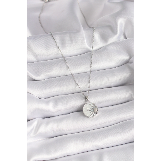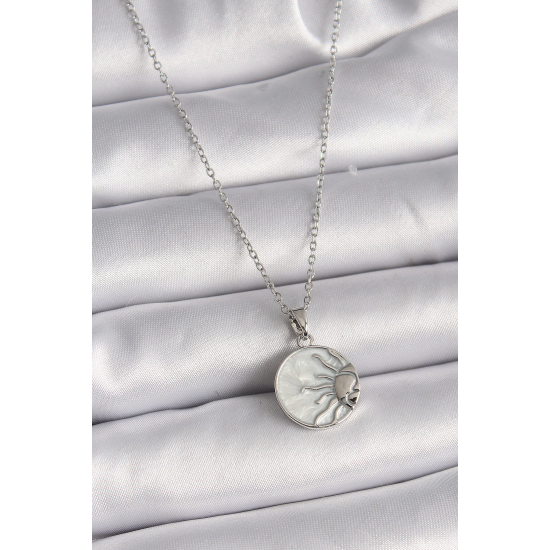 Mey İthalat® 316L Çelik Gümüş Renk Zincir Beyaz Sedefli Gün Batımı Model Kadın Kolye