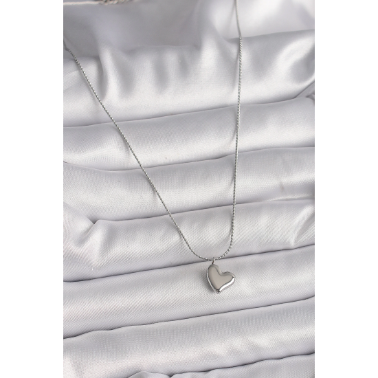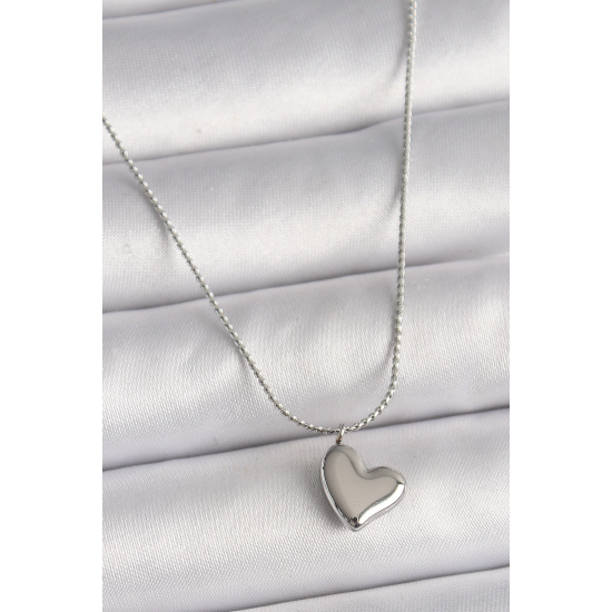 Mey İthalat® 316L Çelik Gümüş Renk Zincir Kalp Figür Kadın Kolye