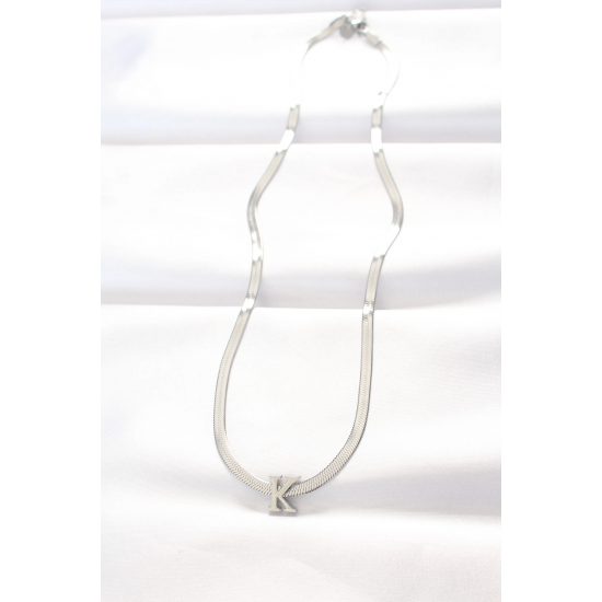 Mey İthalat® 316L Çelik K Harfli Silver Renk İtalyan Zincirli Kolye