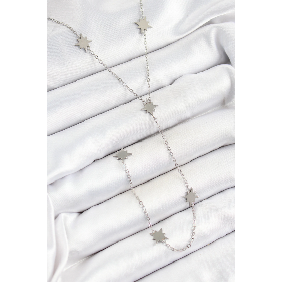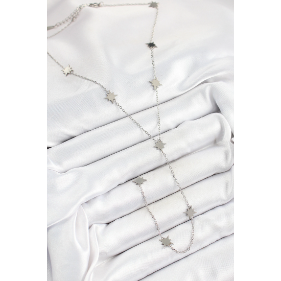 Mey İthalat® 316L Çelik Kutup Yıldızı Figürlü Y Model Gümüş Renk Kadın Kolye