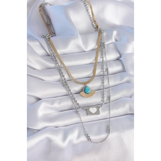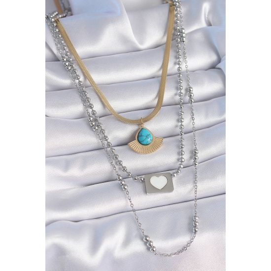 Mey İthalat® 316L Çelik Mix Renk 3'lü Zincir Damla Madalyon Figür Uzun Kadın Kolye
