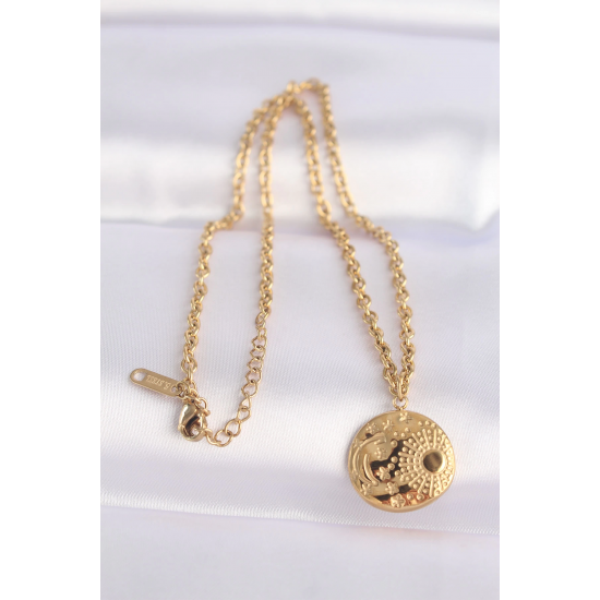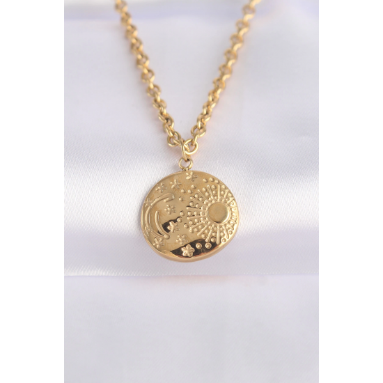 Mey İthalat® 316L Çelik Zincir Altın Renk Oval Desenli Kolye