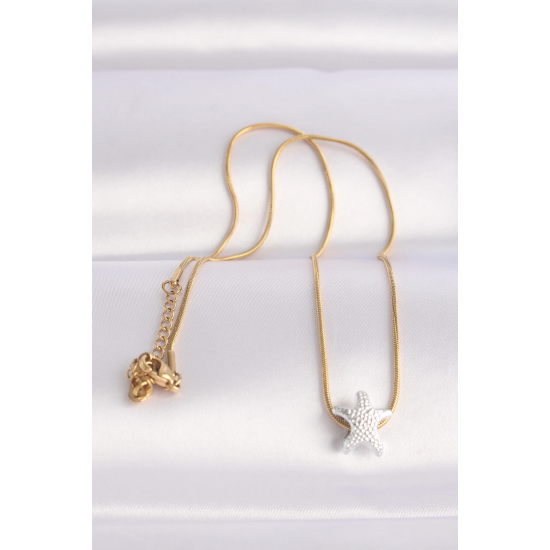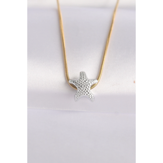 Mey İthalat® 316L Çelik Zincir Altın Renk Zincirli Gümüş Renk Deniz Yıldızı Tasarımlı Kolye