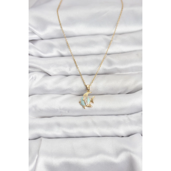 Mey İthalat® 316L Çelik Zincir Gold Renk Balık Model Zirkon Taşlı Kadın Kolye