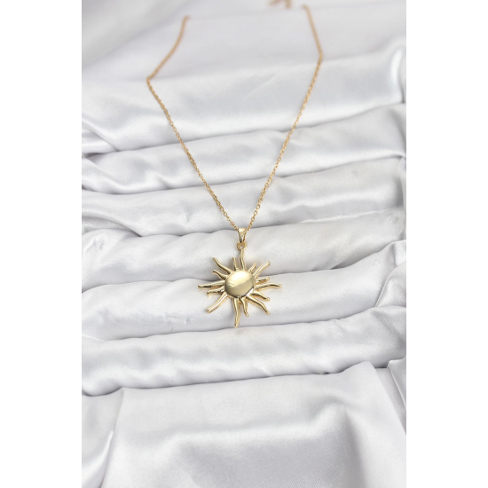 Mey İthalat® 316L Çelik Zincir Gold Renk Güneş Model Kadın Kolye