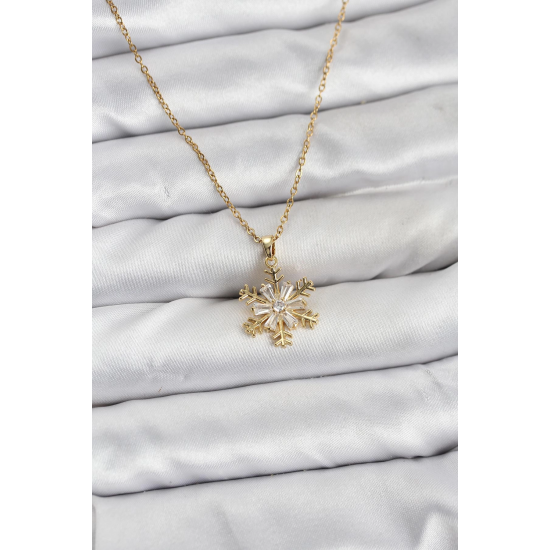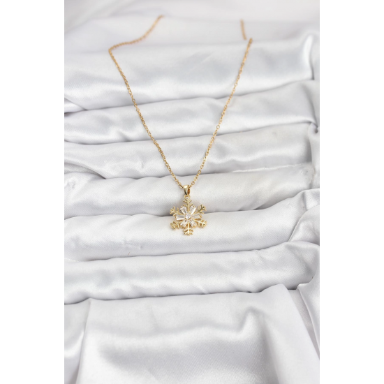 Mey İthalat® 316L Çelik Zincir Gold Renk Kar Tanesi Model Zirkon Taşlı Kadın Kolye