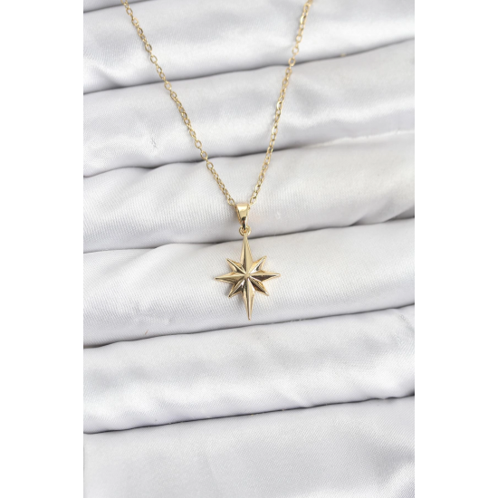 Mey İthalat® 316L Çelik Zincir Gold Renk Kutup Yıldızı Model Kadın Kolye