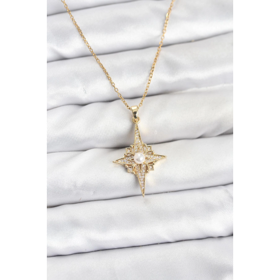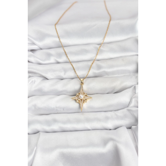 Mey İthalat® 316L Çelik Zincir Gold Renk Kutup Yıldızı Model Zirkon Taşlı Kadın Kolye