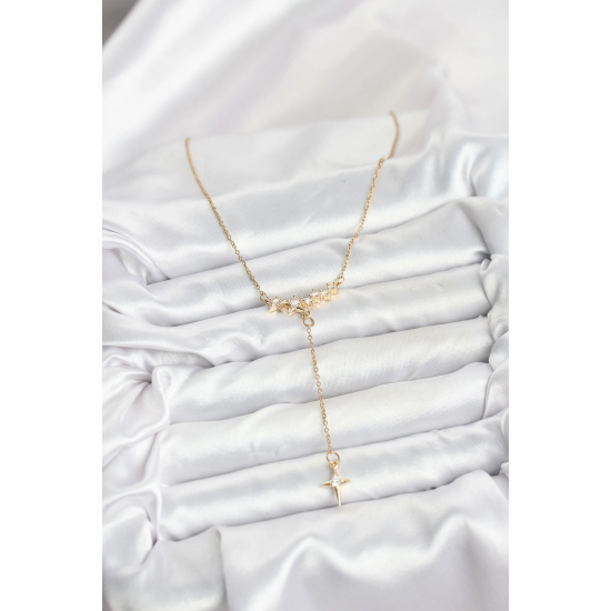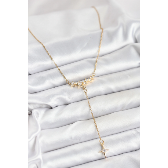 Mey İthalat® 316L Çelik Zincir Gold Renk Yıldız Model Y Kadın Kolye