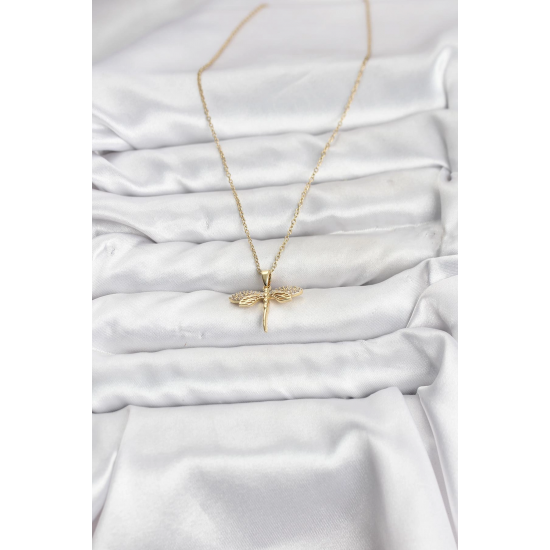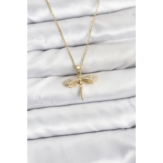 Mey İthalat® 316L Çelik Zincir Gold Renk Yusufçuk Model Zirkon Taşlı Kadın Kolye