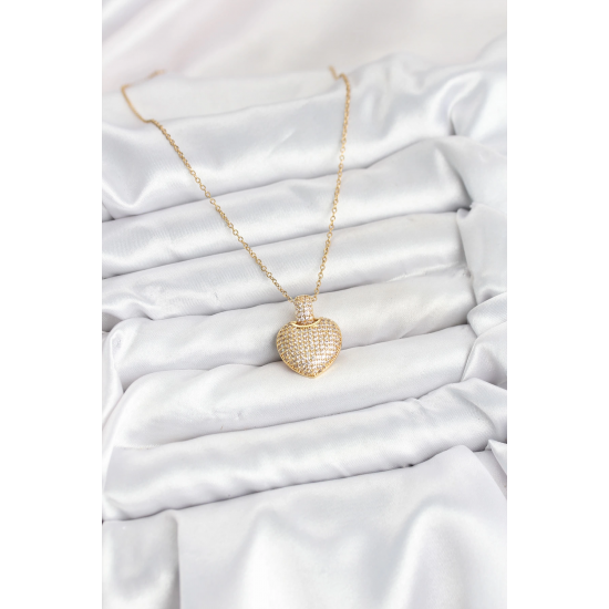 Mey İthalat® 316L Çelik Zincir Gold Renk Zirkon Taşlı Kalpli Kadın Kolye