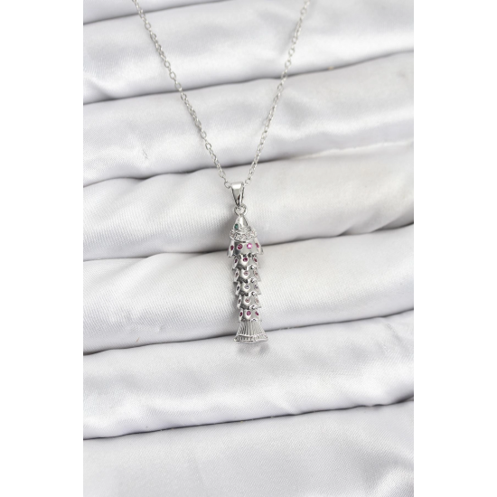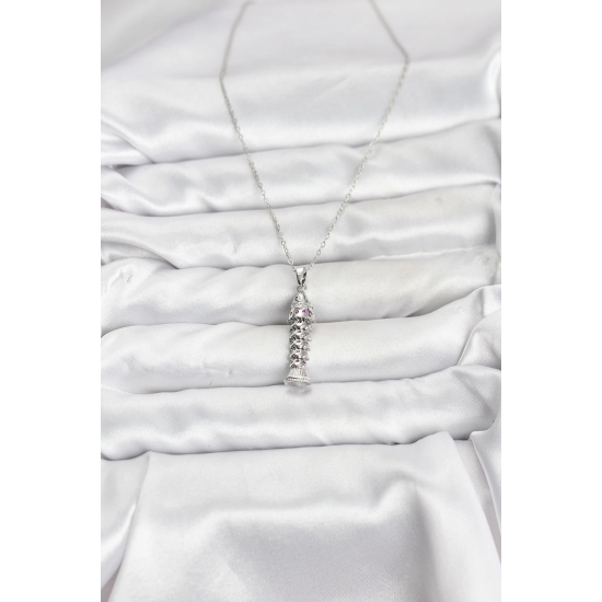 Mey İthalat® 316L Çelik Zincir Gümüş Renk Balık Model Zirkon Taşlı Kadın Kolye