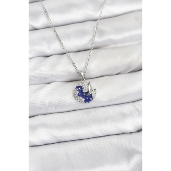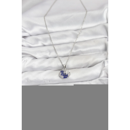 Mey İthalat® 316L Çelik Zincir Gümüş Renk Gece Model Zirkon Taşlı Kadın Kolye