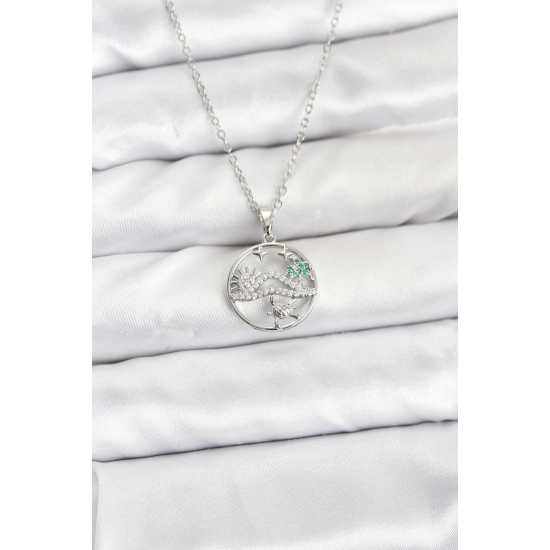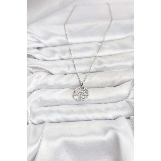 Mey İthalat® 316L Çelik Zincir Gümüş Renk Şans Kolyesi Model Zirkon Taşlı Kadın Kolye