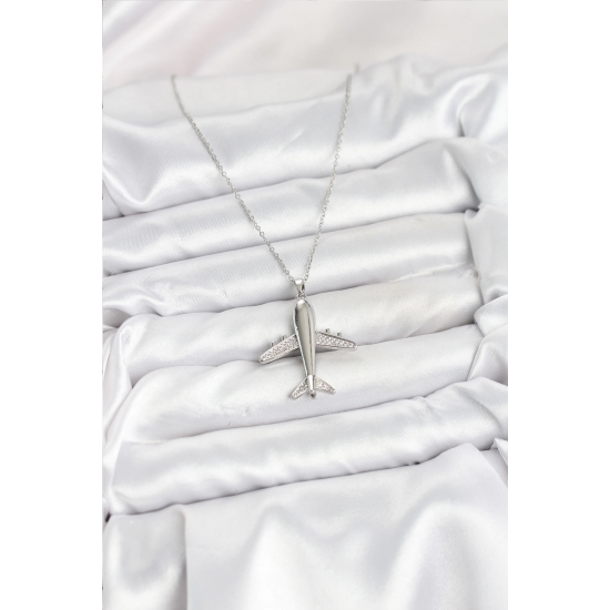 Mey İthalat® 316L Çelik Zincir Gümüş Renk Uçak Model Kadın Kolye