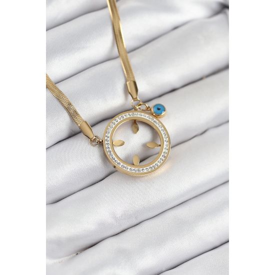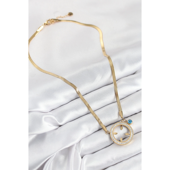 Mey İthalat® 316L Çelik Zirkon Taşlı Çeyrek Takılabilir Gold Renk Kadın Kolye