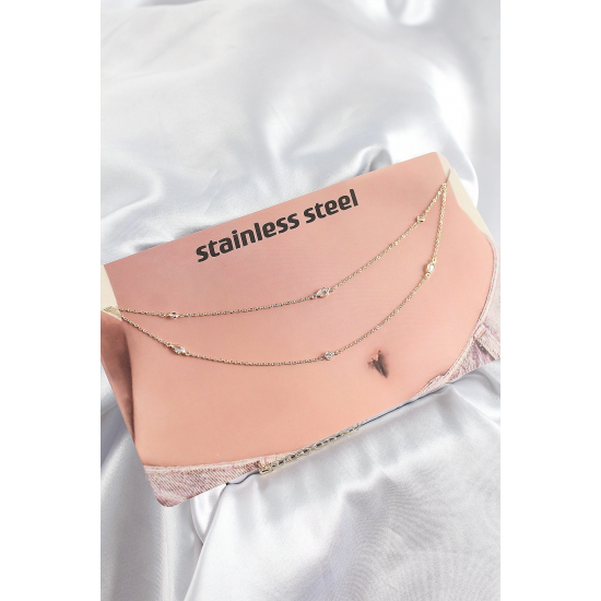 Mey İthalat® 316L Çelik Zirkon Taşlı Damla Model Gold Renk Göbek Bel Zinciri