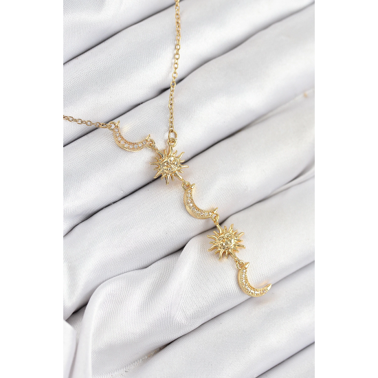 Mey İthalat® 316L Çelik Zirkon Taşlı Güneş Ve Ay Model Gold Renk Kadın Kolye