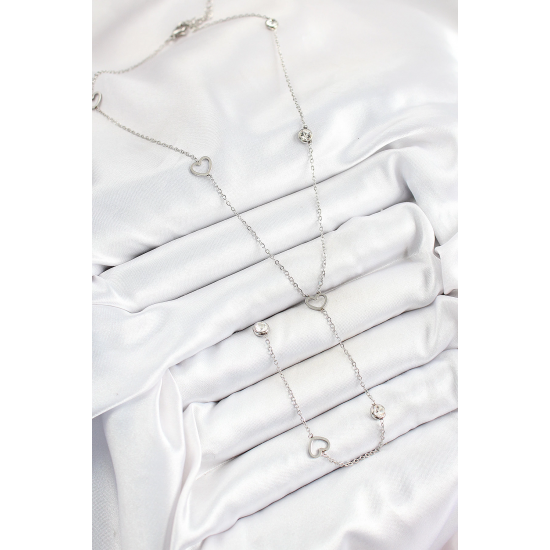 Mey İthalat® 316L Çelik Zirkon Taşlı Kalp Figürlü Y Model Gümüş Renk Kadın Kolye