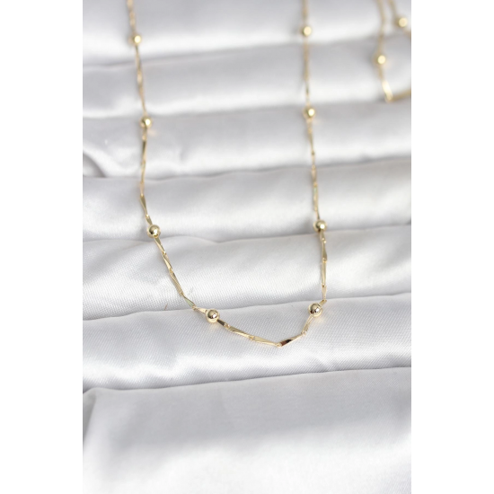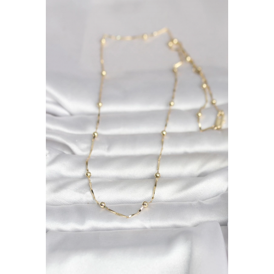 Mey İthalat® CM 14K Gold Renk Kesme Çubuk Zincir Topçuklu Model 60 cm Kadın Kolye