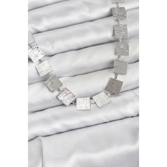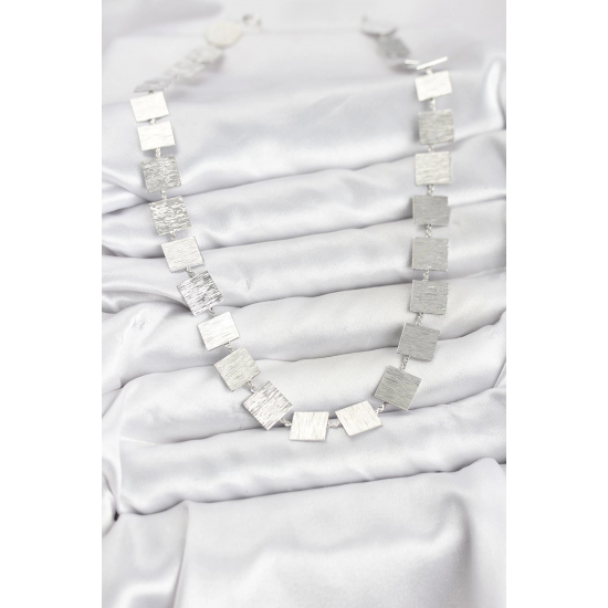 Mey İthalat® Kare Plaka Model Gümüş Renk Kadın Kolye