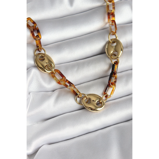 Mey İthalat® Leopar Desenli Mika Gold Renk Zincir Kadın Kolye