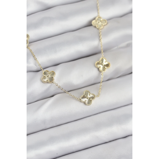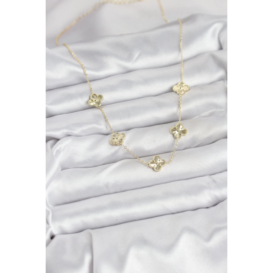 Mey İthalat® Pirinç Gold Renk Yonca Kadın Kolye