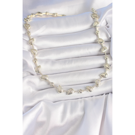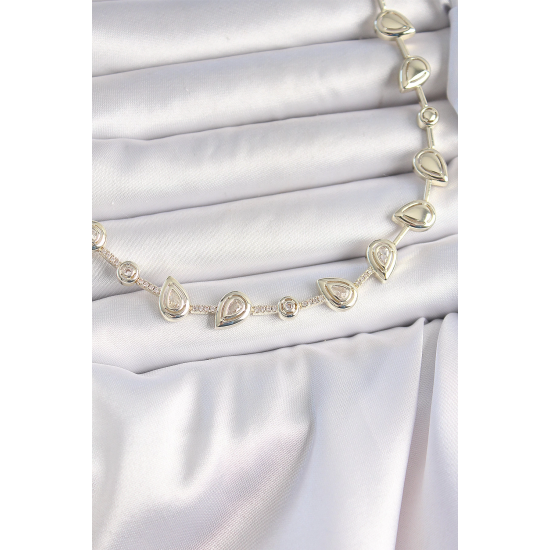 Mey İthalat® Pirinç Gold Renk Zirkon Taşlı Damla Model VIP Seri Exclusive Kadın Kolye