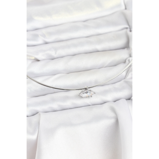 Mey İthalat® Pirinç Gümüş Renk Choker Model Zirkon Taşlı Kadın Kolye