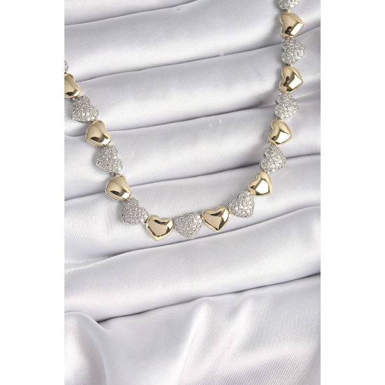 Mey İthalat® Pirinç Mix Renk Zirkon Taşlı Kalp Model VIP Exclusive Seri Kadın Kolye