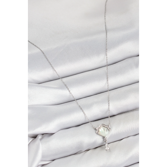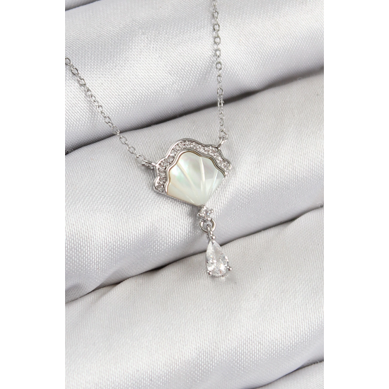 Mey İthalat® Pirinç Zirkon Taşlı İstiridye Model Gümüş Renk Kadın Kolye