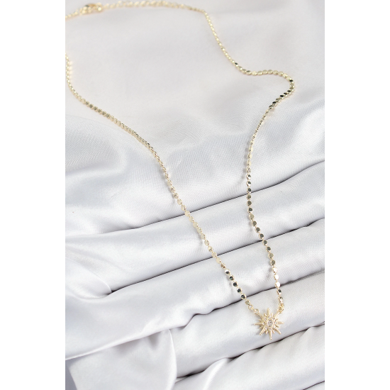 Mey İthalat® Pirinç Zirkon Taşlı Kutup Yıldızı Model Ezme Zincir Gold Renk Kadın Kolye