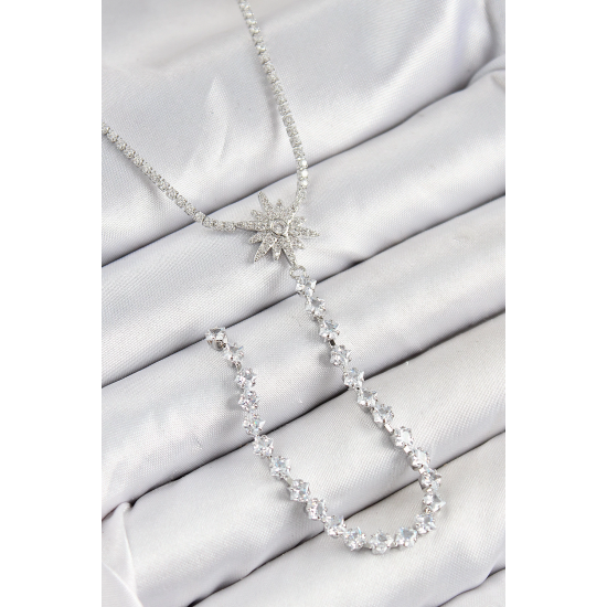 Mey İthalat® Pirinç Zirkon Taşlı Kutup Yıldızı Model Gold Renk Y Kolye