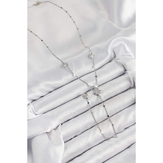 Mey İthalat® Pirinç Zirkon Taşlı Kutup Yıldızı Model Gümüş Renk Y Kolye