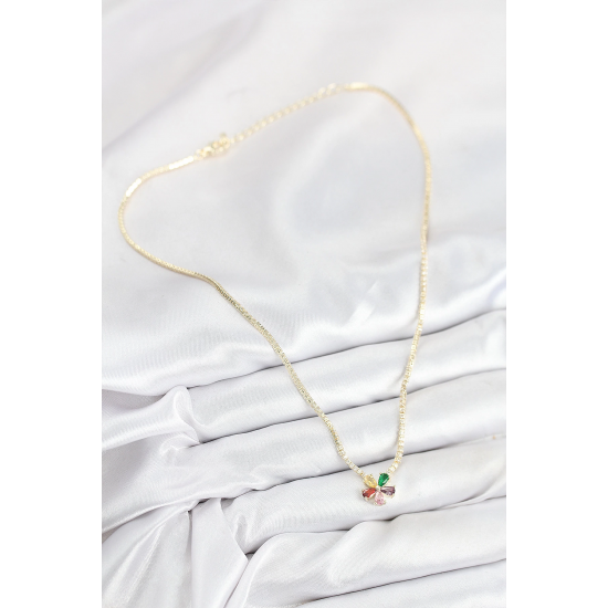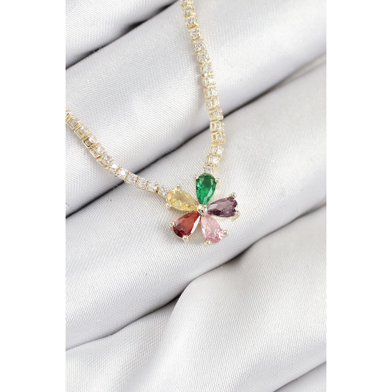 Mey İthalat® Pirinç Zirkon Taşlı Su Yolu Asorti Çiçek Model Gold Renk Kadın Kolye