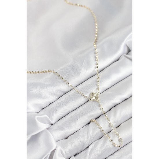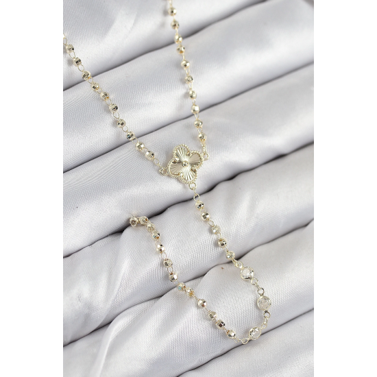 Mey İthalat® Pirinç Zirkon Taşlı Yonca Model Gold Renk Kadın Y Kolye
